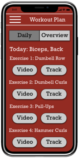 In order to start thinking about how users would interact with my application, I produced a low-fidelity paper prototype which allowed me to gather feedback from my peers through user testing. I received quality feedback from several potential users, with the most common comments pertaining to how to find certain areas of the app. The potential users pointed out issues with finding settings on the homepage, and confusion over where certain things, such as updating their weight, took place. With this feedback in mind, I worked towards developing a mid-fidelity prototype.